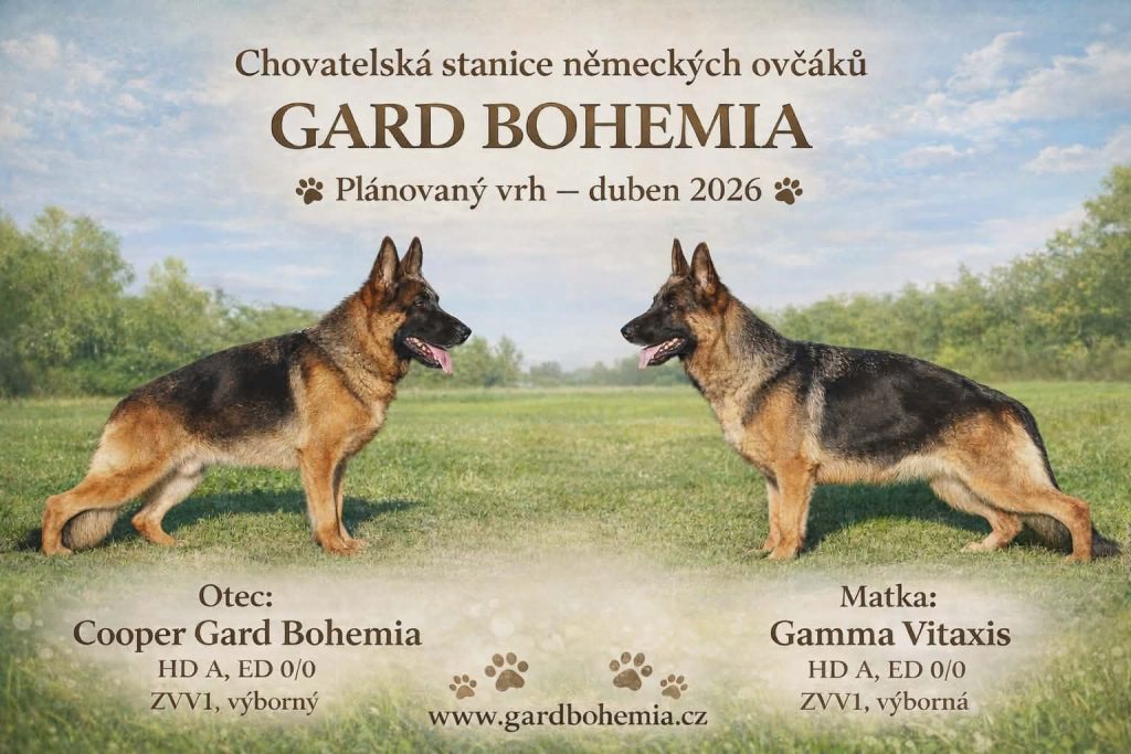 Máme nakryto Posted on 13. 3. 202613. 3. 2026 by Admin V dubnu očekáváme poprvé štěňata ze spojení: Cooper Gard Bohemia & Gamma Vitaxis.